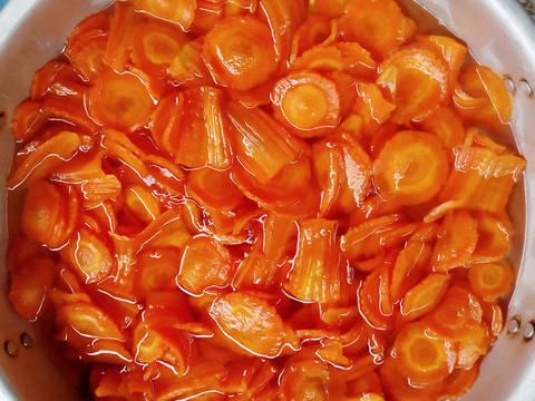 - Cho toàn bộ cà rốt ngâm đường vào và bắt đầu sên mứt.