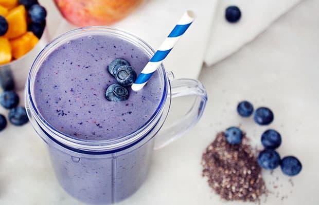 Việt quất mang năng lượng cho một ngày hoạt động hiệu quả kết hợp cùng xoài chứa nhiều vitamin C tốt cho sức khỏe. Sự kết hợp của hai nguyên liệu trên tạo ra món sinh tố tuyệt vời chứa thêm omega-3 và chất xơ.