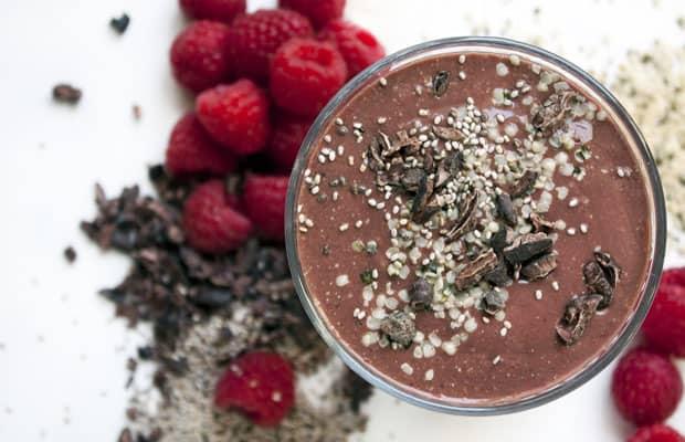 Phúc bồn tử chứa nhiều vitamin C, chất xơ và dưỡng chất thực vật là lựa chọn hoàn hảo cho món sinh tố của bạn. Bạn có thể thêm socola trắng vào sinh tố để kích thích vị giác.