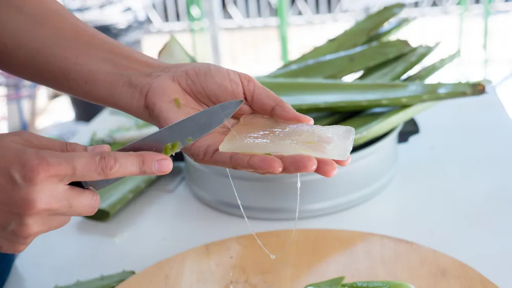 - Bóp nhẹ nha đam để loại bỏ đi độc tố và nhựa bên trong.