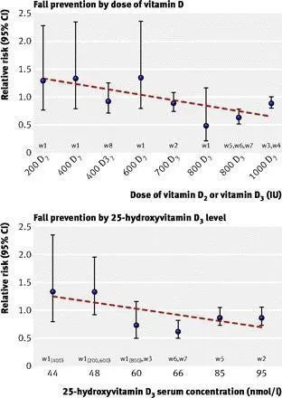 Hiện các loại viên uống bổ sung vitamin D xuất hiện trên thị trường có nhiều liều dùng khác nhau. Vậy nên chọn liều nào mới phù hợp với người cao tuổi? Theo nghiên cứu “Phòng ngừa té ngã với các viên uống bổ sung và hình thức hoạt động của vitamin D: Phân tích tổng hợp các thử nghiệm ngẫu nhiên có đối chứng” do Tập san học thuật BMJ đăng tải cho thấy nguy cơ té ngã ở người lớn tuổi giảm xuống 19% trong 7 nghiên cứu với liều dùng vitamin D từ 700 – 1000 IU hằng ngày trên 1921 cá nhân. Lợi ích này có thể không phụ thuộc vào việc bổ sung thêm canxi, có ý nghĩa trong vòng 2-5 tháng điều trị và kéo dài sau 12 tháng điều trị.