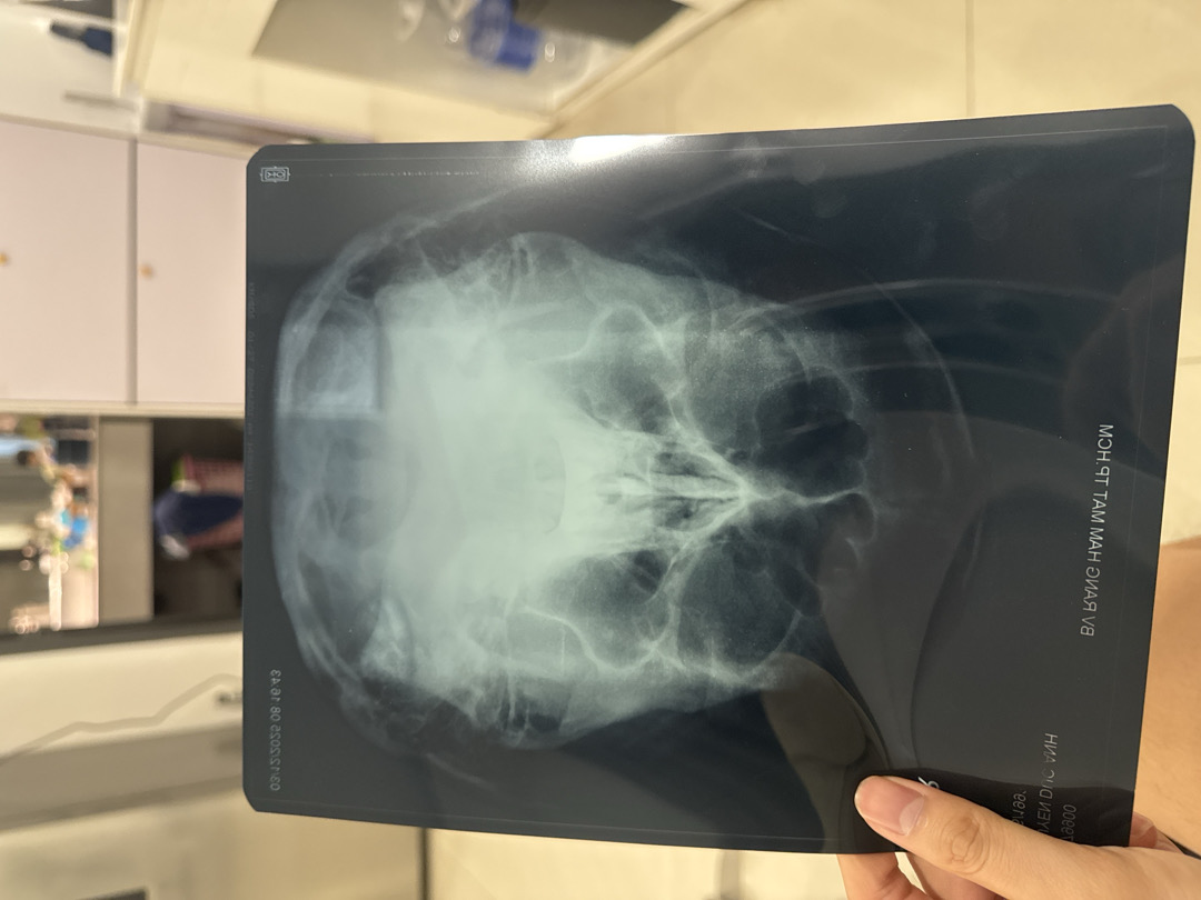 Cách đây 1 tháng rưỡi em có phẫu thuật nâng mũi khẩu hay gọi là nang ống mũi tại bệnh viện răng hàm mặt. Sau mổ thì vết thương lành tốt tuy nhiên là em luôn có cảm giác bị đau đầu nặng mặt, trán và nặng 2 bên cánh mũi. Sau khi tái khám bệnh viện răng hàm mặt thì bác sĩ có cho chụp X quang xoang hàm và kêu em khám thêm chuyên khoa tai mũi họng