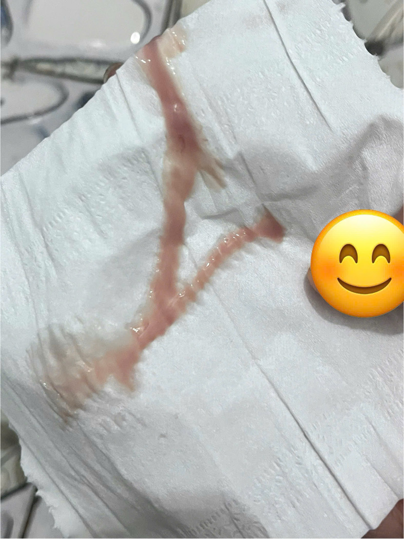 Đây có phải máu báo thai k ạ? Em và ny qh và có xuất trong, đây là hình ảnh khi em chậm kinh 5 ngày, hiện tại em đã chậm 15 ngày nhưng thử que test giấy 2 lần 1 vạch ạ. Vì kinh nguyệt em ko đều nên chưa chắc chắn được ạ, bổ sung thêm e có ra dịch hồng lỏng gần giống nước và có màu giống sữa dâu, em bị như này kéo dài 2 ngày