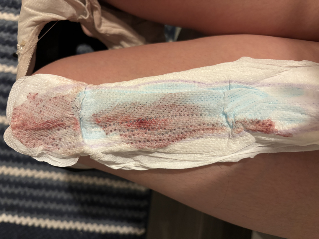 Dựa trên hình ảnh bạn cung cấp, lượng máu chảy khá nhiều, màu đỏ tươi hoặc đỏ sẫm, loãng và có thể kèm ít chất nhầy – đây là đặc điểm điển hình của máu kinh nguyệt. Máu báo thai (trong trường hợp có thai sớm) thường rất ít, chỉ ra vài giọt hoặc loang nhẹ màu hồng, nâu nhạt, kéo dài 1–2 ngày, không thấm ướt cả băng vệ sinh như trong ảnh bạn gửi.