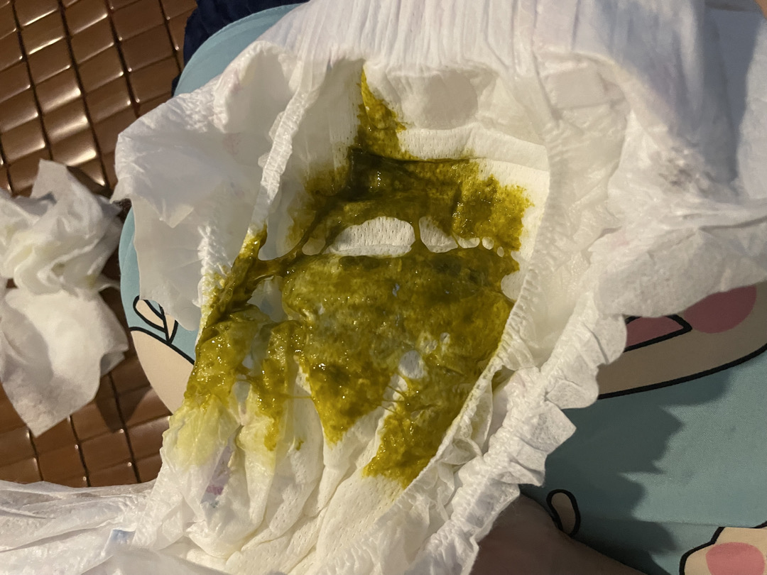 Trước khi bổ sung nước, bé đi phân xanh có mùi hôi. 2 ngày đi poo 1 lần ạ