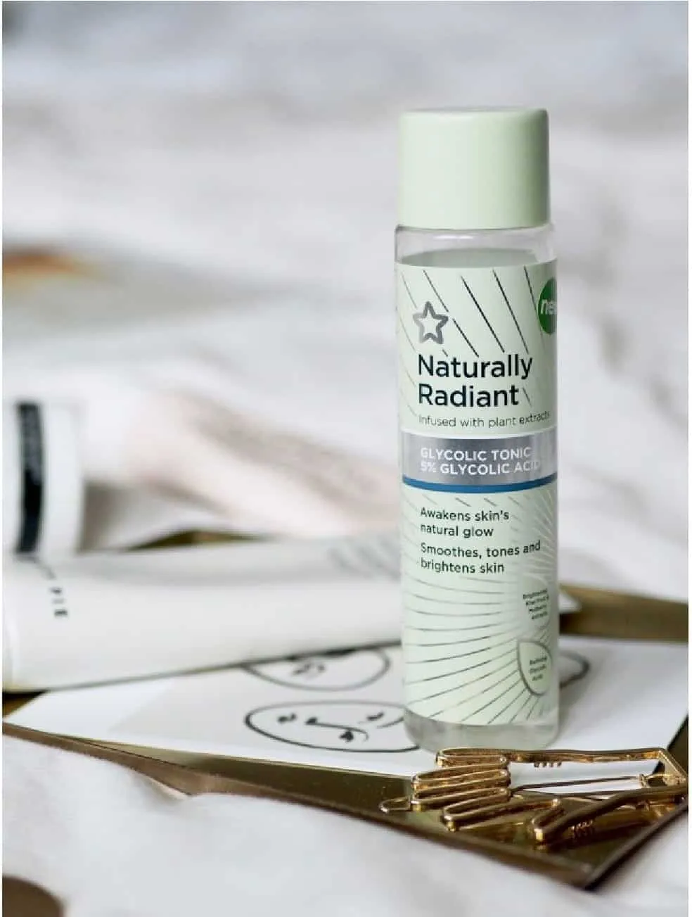 Sản phẩm toner có chứa AHA tiếp theo đến từ thương hiệu Naturally Radiant – một thương hiệu mỹ phẩm lớn thứ 2 ở Anh. Tại Việt Nam, có thể bạn đã từng nghe đến thương hiệu này với sản phẩm nổi đình đám khác là khăn nóng tẩy trang. Nhưng Toner AHA Naturally Radiant Glycolic Tonic 5% Glycolic Acid cũng rất đáng để tham khảo. Với Chiết xuất từ quả kiwi – nguồn cung cấp vitamin C, quả mâm xôi kết hợp với Glycolic Acid 5% – sản phẩm được mong đợi đem đến khả năng làm mềm mịn và trắng sáng da bên cạnh tẩy da chết.