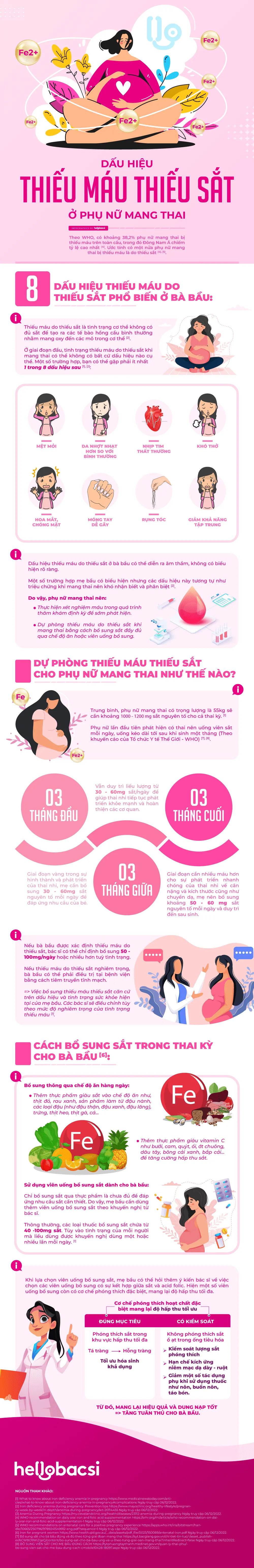 Vậy làm thế nào để nhận biết tình trạng thiếu máu do thiếu sắt ở bà bầu? Mời bạn cùng Hellobacsi theo dõi tiếp phần trong infographic (bảng đồ họa thông tin) dưới đây nhé!
