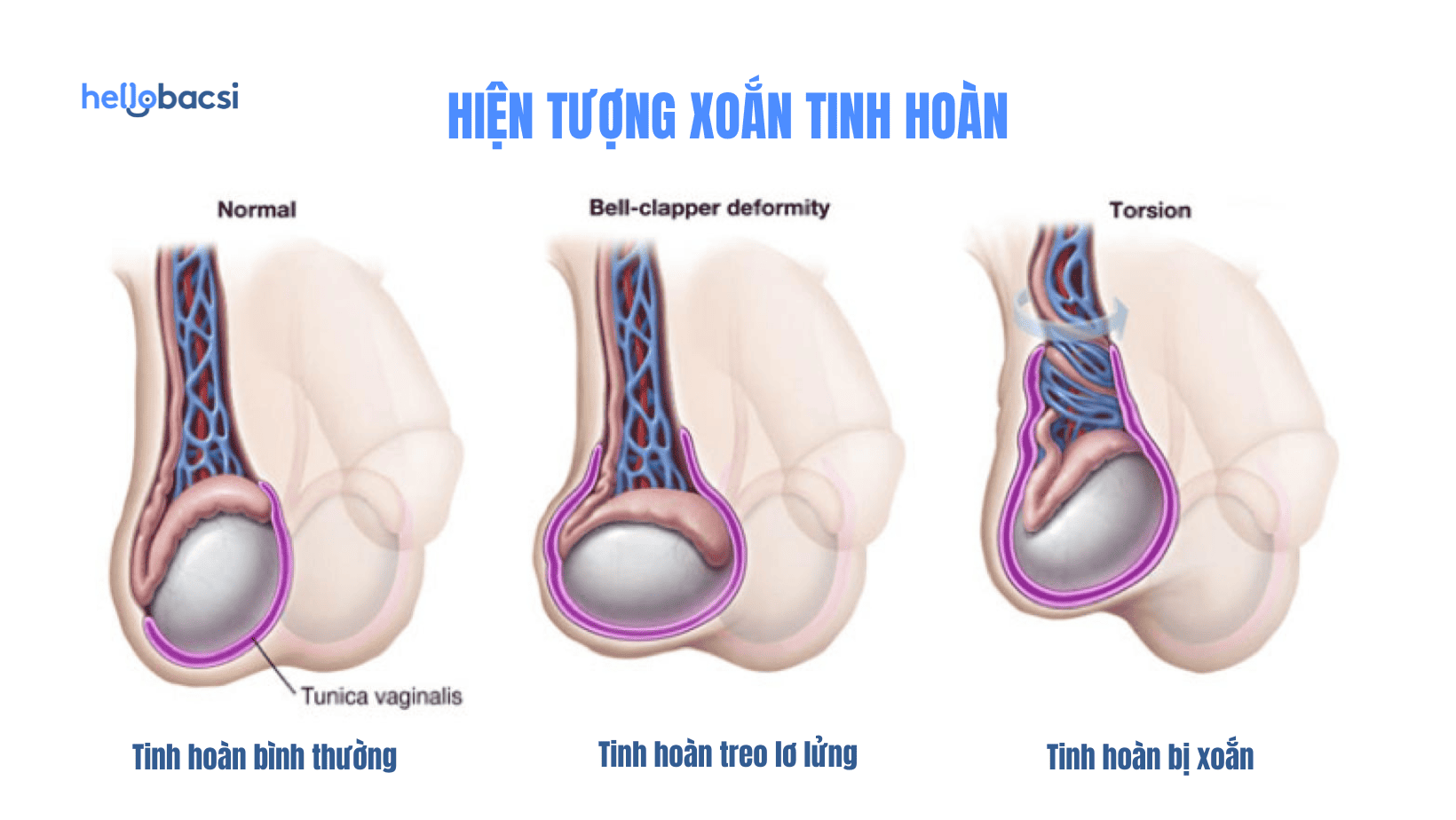 - Xoắn tinh hoàn: Phẫu thuật tháo xoắn tinh hoàn, phục hồi và cung cấp máu cho tinh hoàn. Sau đó cố định tinh hoàn trở lại vị trí ban đầu.