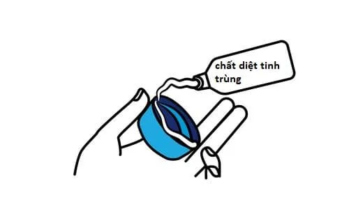 - Cho 1/4 chất diệt tinh trùng vào dưới đáy mũ.