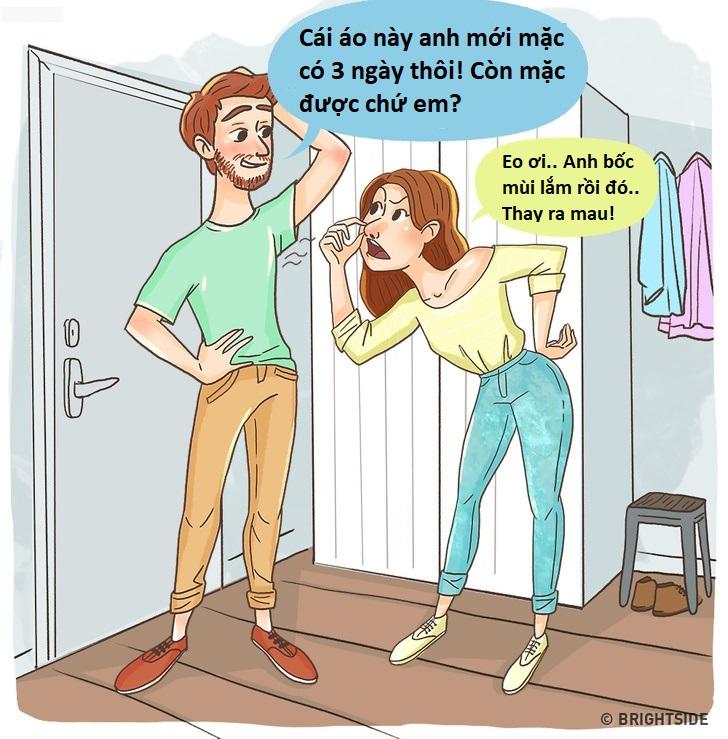 Khi ở cùng người yêu, hai bạn sẽ là người kiểm tra trang phục cho nhau mỗi ngày trước khi ra ngoài. Bạn cũng có thể vô tư hít hà và nói cho đối phương biết chiếc áo người ấy đang mặc có bốc mùi hay không. Một điều thú vị là ngửi quần áo người yêu còn giúp bạn xua tan căng thẳng đấy!
