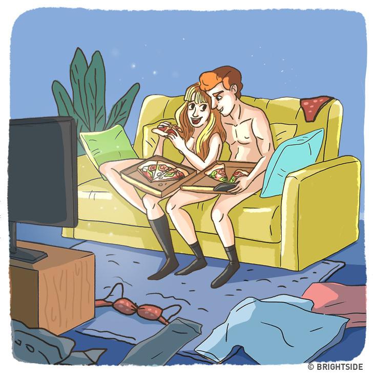 Một khi đã quá quen thuộc với nhau, bạn không còn ngại hay xấu hổ khi để cho người yêu thấy khuyết điểm trên cơ thể bạn. Vì vậy, hai bạn có thể thoải mái không mặc quần áo mà vẫn tự tin khi ở cùng nhau!